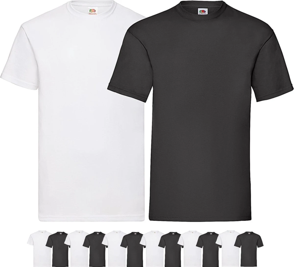 Wie draagt er geen T-shirts? Het is misschien wel het meest veelzijdige kledingstuk ter wereld en is gewoon essentieel voor je garderobe. Of je het nu onder een overhemd, blazer of trui draagt, of boven je jeans. Deze exemplaren van Fruit of the Loom hebben een uitstekende pasvorm die altijd goed valt. Van deze kwaliteit kan je nooit genoeg in je kledingkast hebben liggen, daarom ontvang je er meteen 12 Valueweight T-Shirt. Zo zit je de komende tijd met genoeg mooie Valueweight T-Shirt met nette borders! U ontvangt 6 x Witte en 6 x Zwarte T Shirts