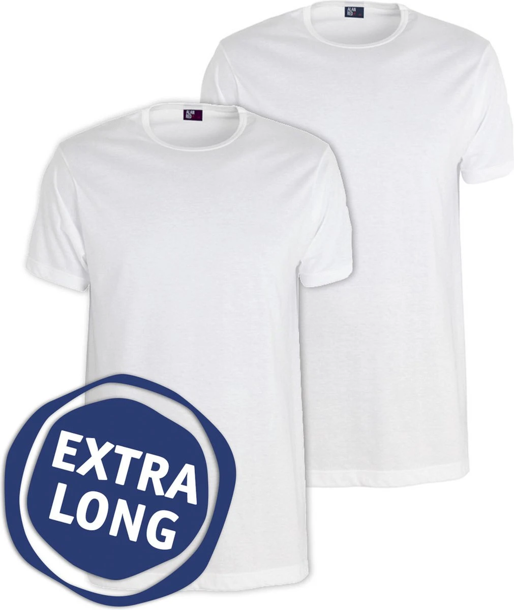 Alan Red Derby Heren T-shirt Extra Lang Wit Rond 2-Pack – XXL