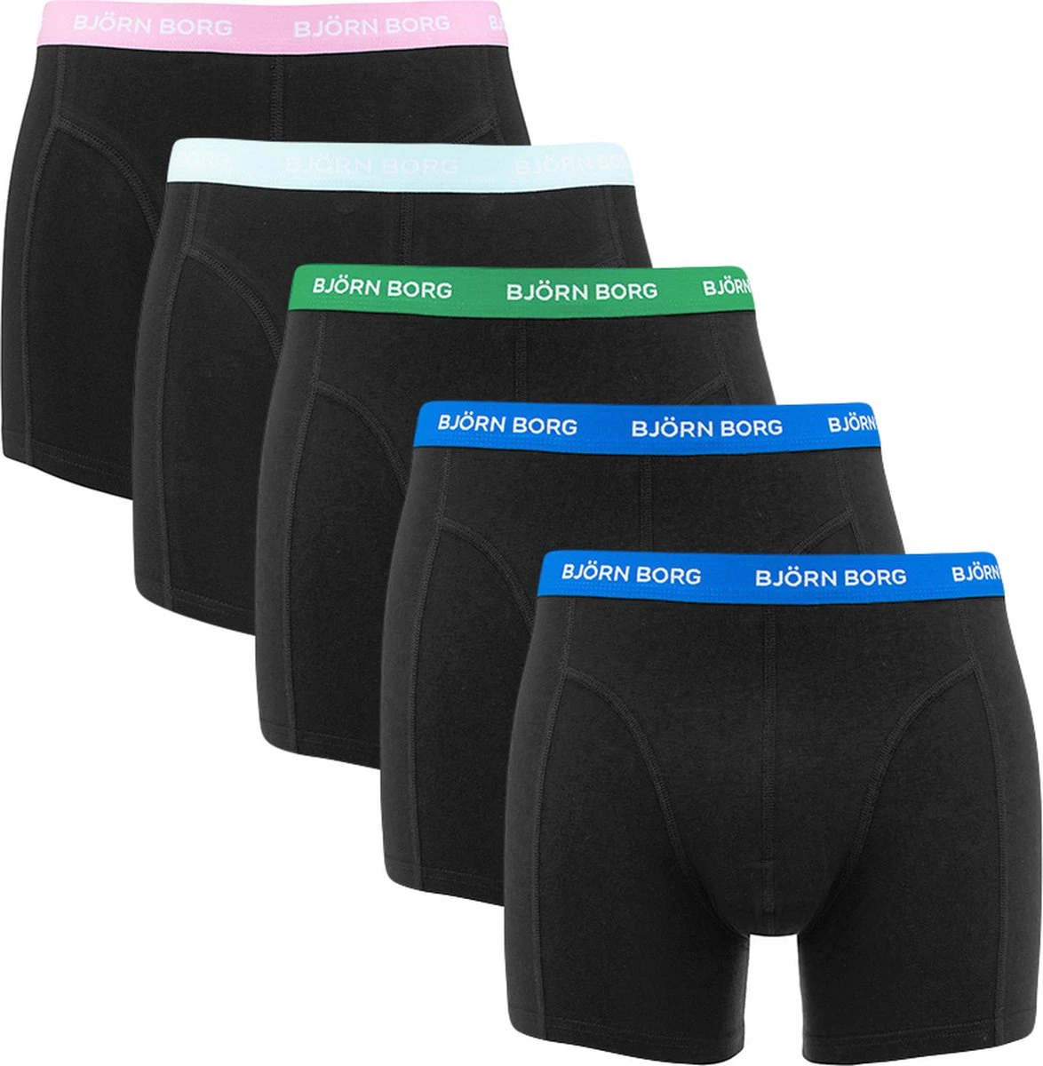 Bjorn Borg Boxershorts in een set van 5 stuks. Voorzien van normale lengte pijpjes die zorgen voor een perfecte ondersteuning en daarmee geschikt voor iedere man. Gemaakt van 95% katoen, 5% elastaan in een Aansluitende pasvorm voor maximale bewegingsvrijheid. Ademend, zacht en comfortabel dankzij het gebruik van natuurlijke materialen. Ontworpen om de hele dag door lekker te zitten met oog voor detail. Blijft ook na veelvuldig wassen mooi in vorm.
