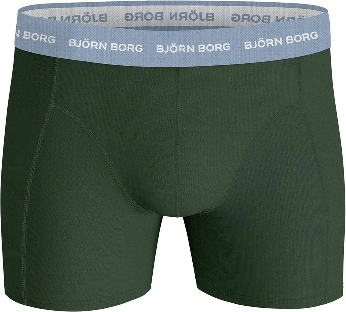 Voordeelverpakking met negen boxers van Bjorn Borg. In deze verpakking zitten negen verschillende boxers. Acht boxers zijn effen en de andere heeft een allover bloemen patroon. De boxers hebben een elastische tailleband met het logo van Bjorn Borg.