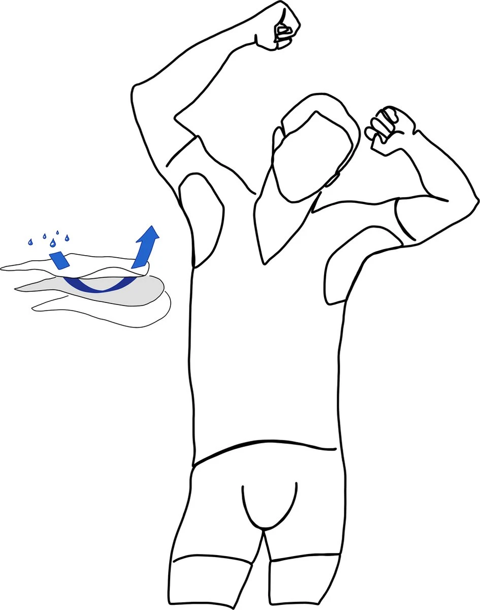 Dankzij een ingenaaide okselpad met een dunne laag van sweatproof en waterdicht materiaal, wordt het zweet tegengehouden en zul je nooit meer last hebben van zweetplekken. Dat garanderen we.