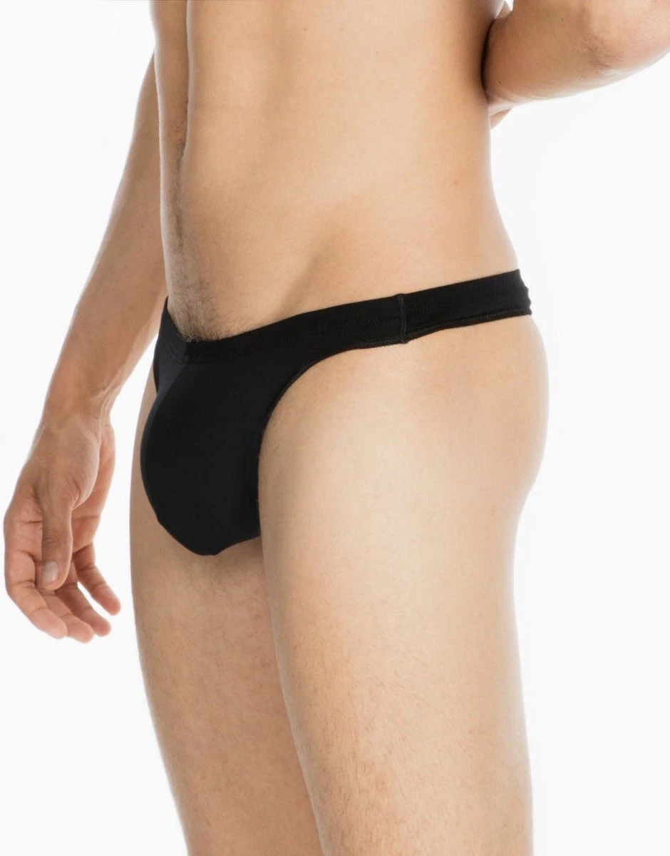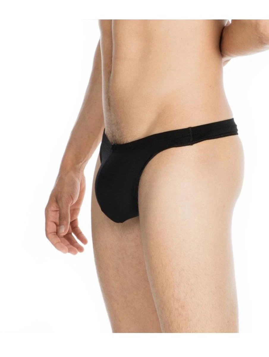 Zwarte G-string voor mannen model Freddy van HOM. Deze luxe string heeft een strakke pasvorm. Deze strings zijn gemaakt van elastisch katoen en is op de heuoen iets dikker dan de andere strings van HOM met als resultaat een heerlijke pasvorm met genoeg bewegingsvrijheid. Deze string accentueert het silhouette en is onzichtbaar onder kleding