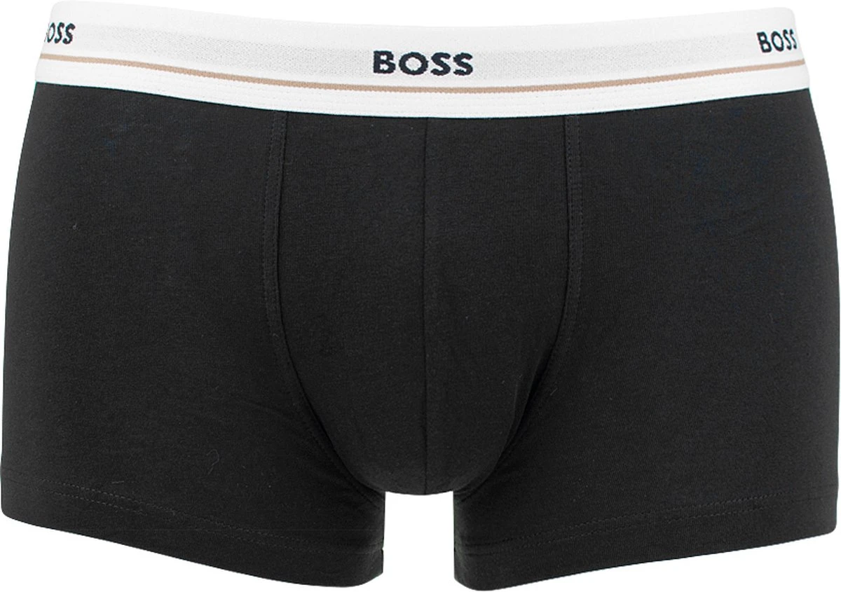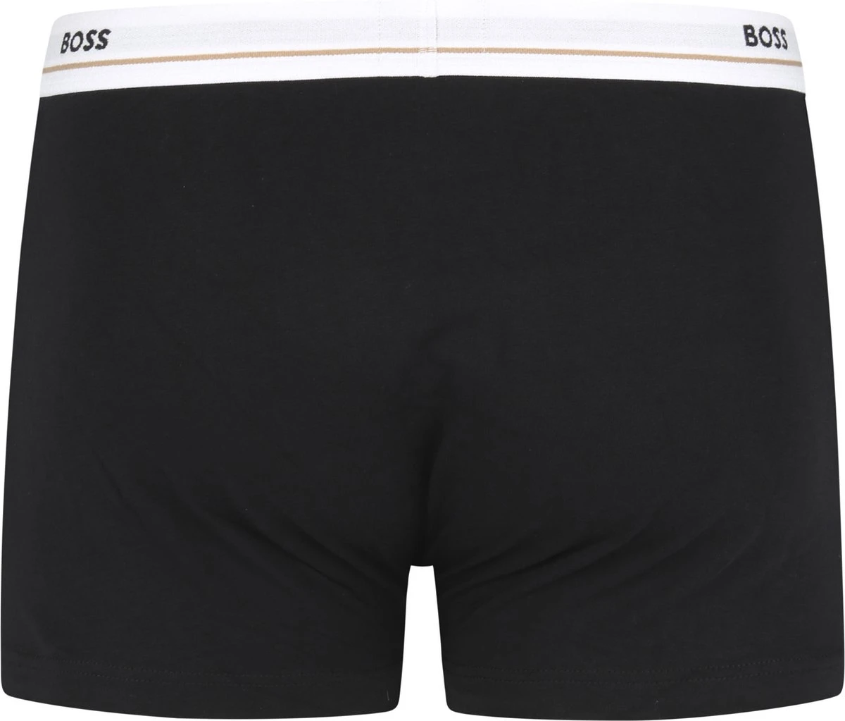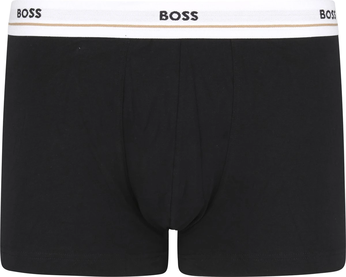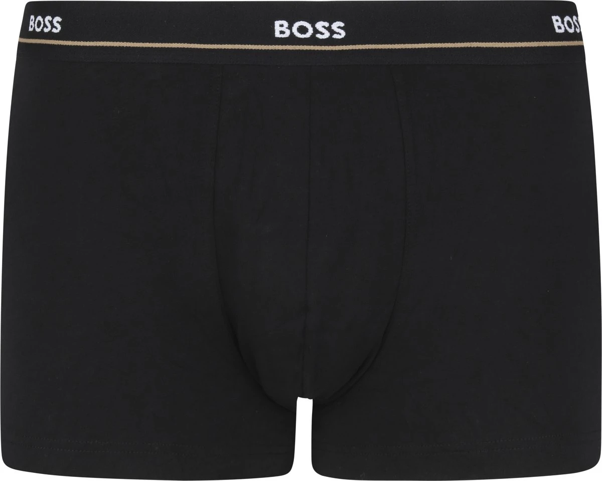 Deze set Hugo Boss boxershorts bevat vijf uni onderbroeken in het zwart. De witte en zwarte elastieke taillebanden van de onderbroeken hebben het herkenbare Hugo Boss logo. Alle onderbroeken zijn gemaakt van 95% katoen, gemengd met 5% elasthaan (stretch). Hierdoor hebben de shorts een zachte en comfortabele touch. Hugo Boss Boxershorts 5-packZwart gekleurdBody-FitGemaakt van 95% katoen en 5% elasthaan (stretch)