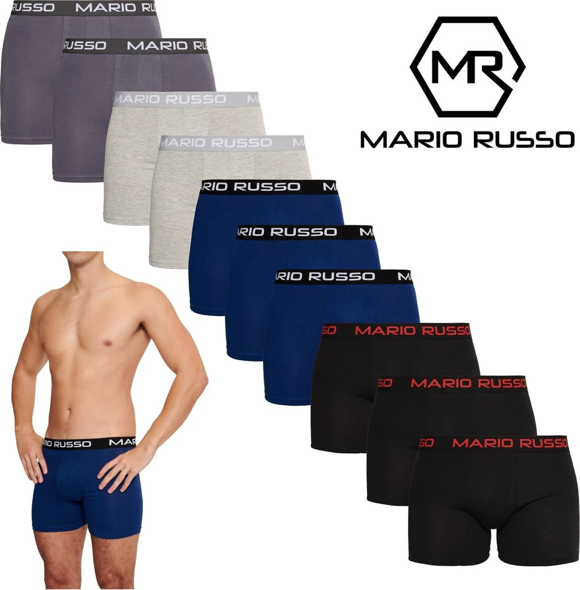 Mario Russo basic boxers voor heren. De boxershorts zijn gemaakt van polyester en elastaan, wat zorgt dat de stof veel rek heeft.