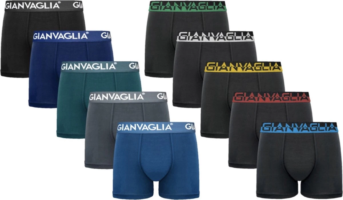 Boxershorts van Gianvaglia voor heren in een 10-pack met nieuwe, unieke en vrolijke print. 10 prints voor elke dag wat leuks! Uitstekende kwaliteit voor een geweldige prijs. Onmisbaar in je garderobe!