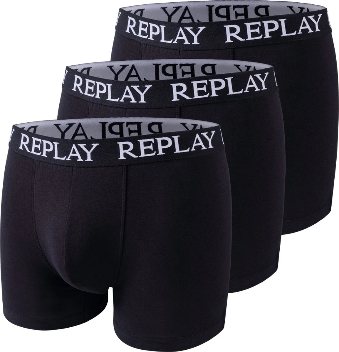 Heren 3-Pack Basic Boxers van het merk Replay in drie kleuren.
