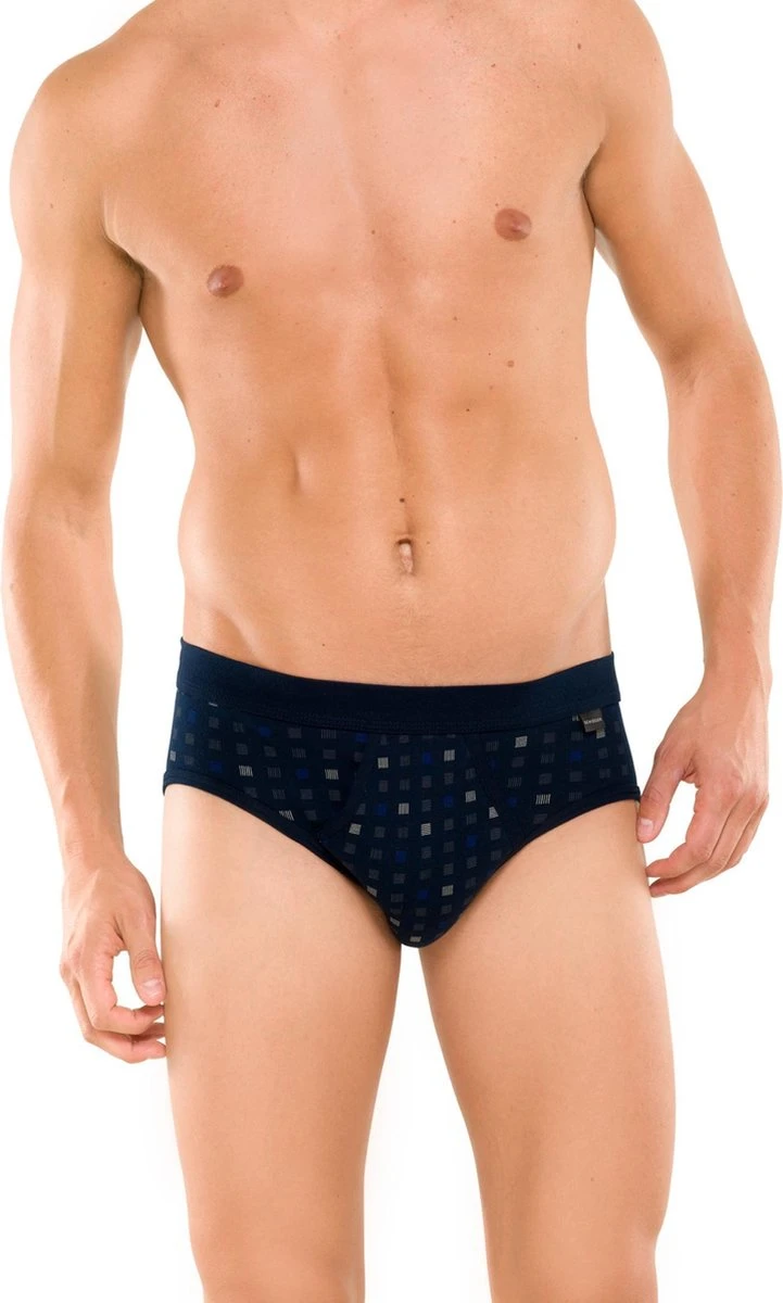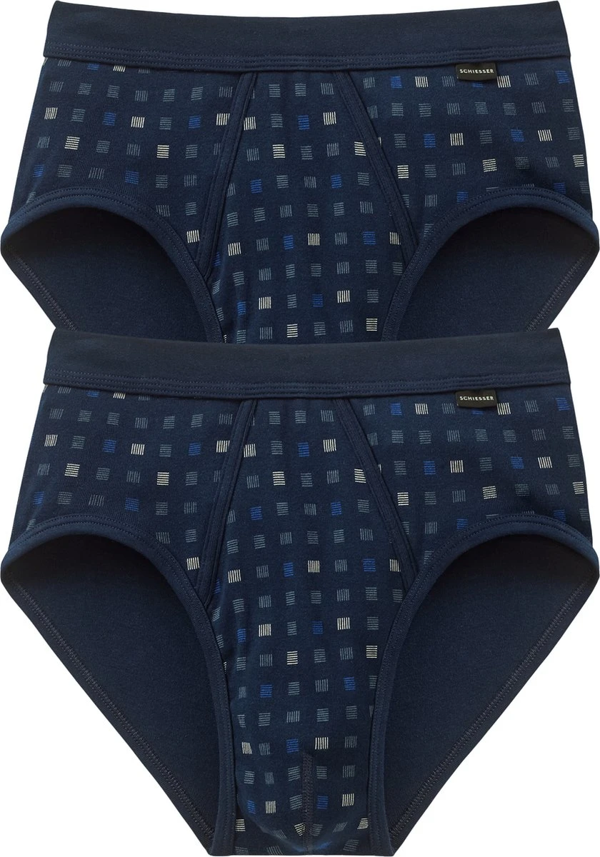 Klassiek ondergoed in 2-pack: deze marineblauwe sportslip met voorsluiting en ruitjes voor heren is de perfecte combinatie van een tijdloos mooi design en uitstekend materiaal. Een gevarieerde ruitjesprint verleent de slip een mannelijke karakter en door het 100% supergekamde katoen van fijnribkwaliteit voelt hij ook bijzonder zacht en comfortabel aan op de huid. Ideaal voor heren die sterk, vormvast en duurzaam ondergoed met een authentieke look op prijs stellen.
