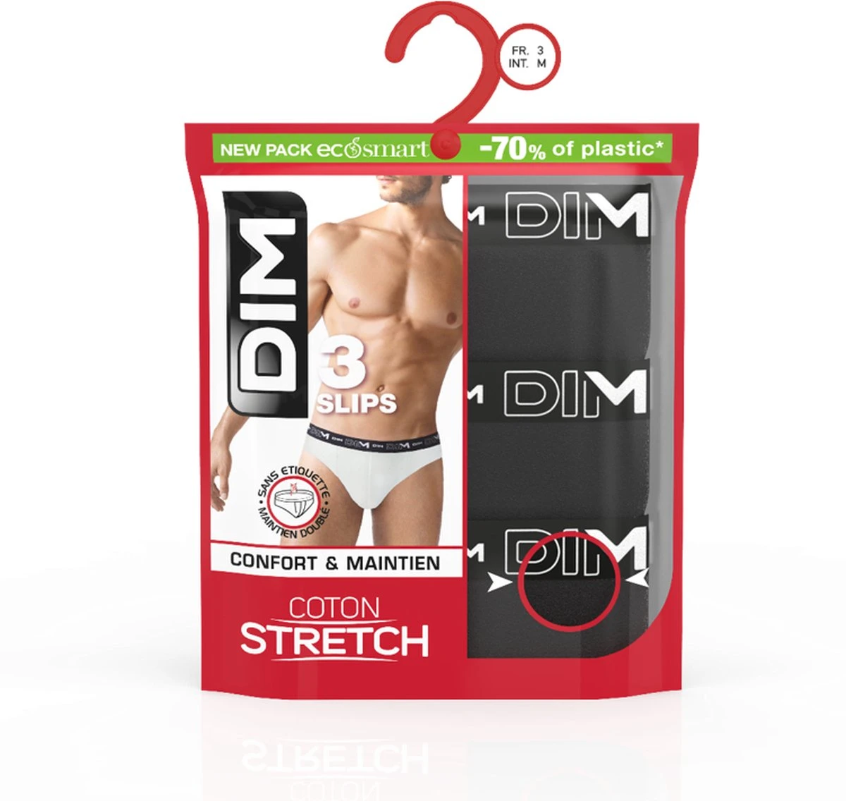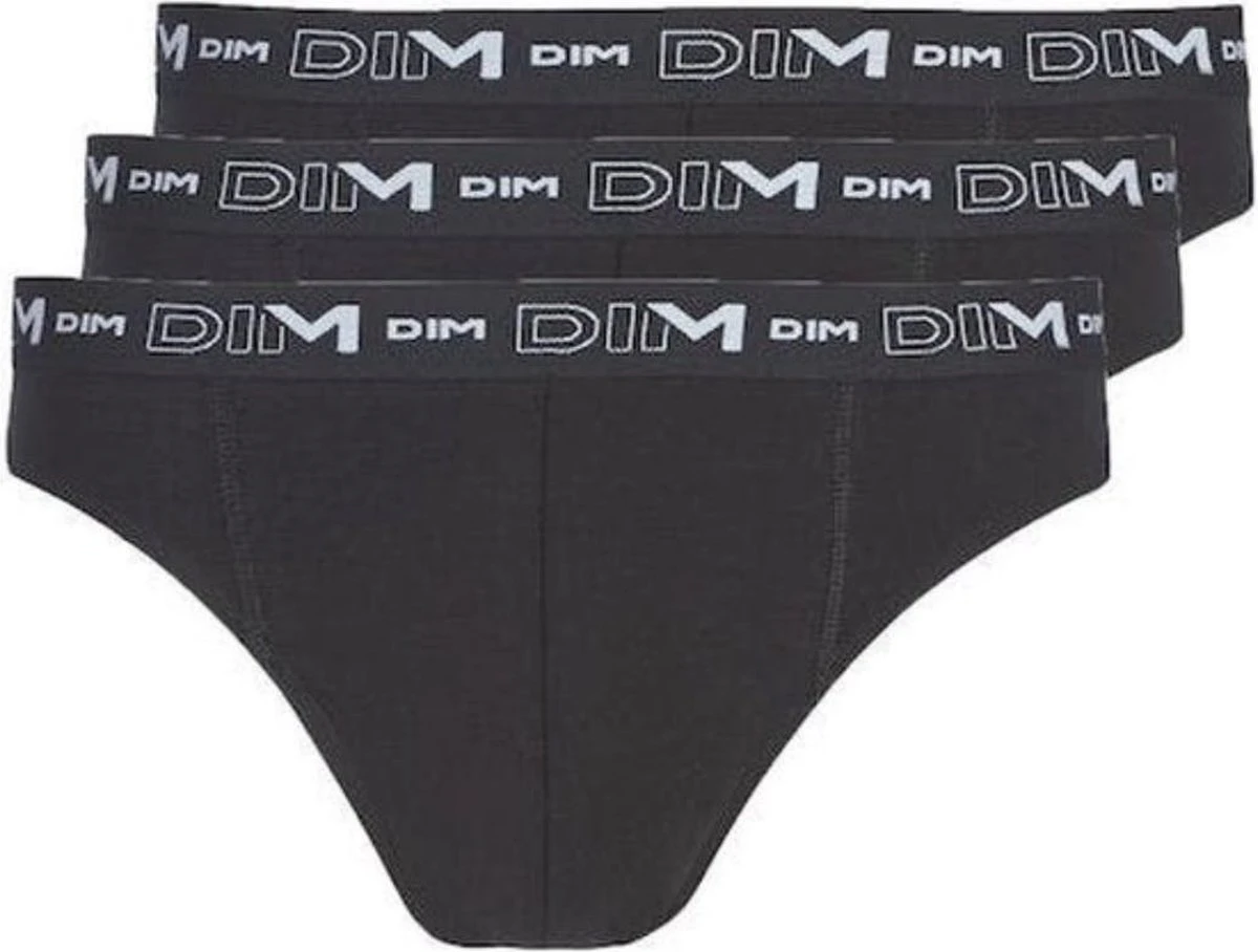 Zwarte slips Stretch Katoen voor een perfecte dagelijkse look. * Materiaal: stretch katoen* Eenvoudig en schoon uiterlijk* Riem met wit DIM-logo* Set van 3 slipjes