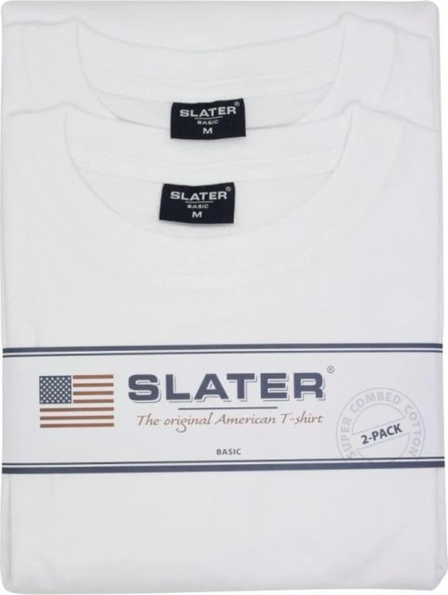Slater 2500 – BASIC 2-pack T-shirt ronde hals korte mouw wit L 100% katoen