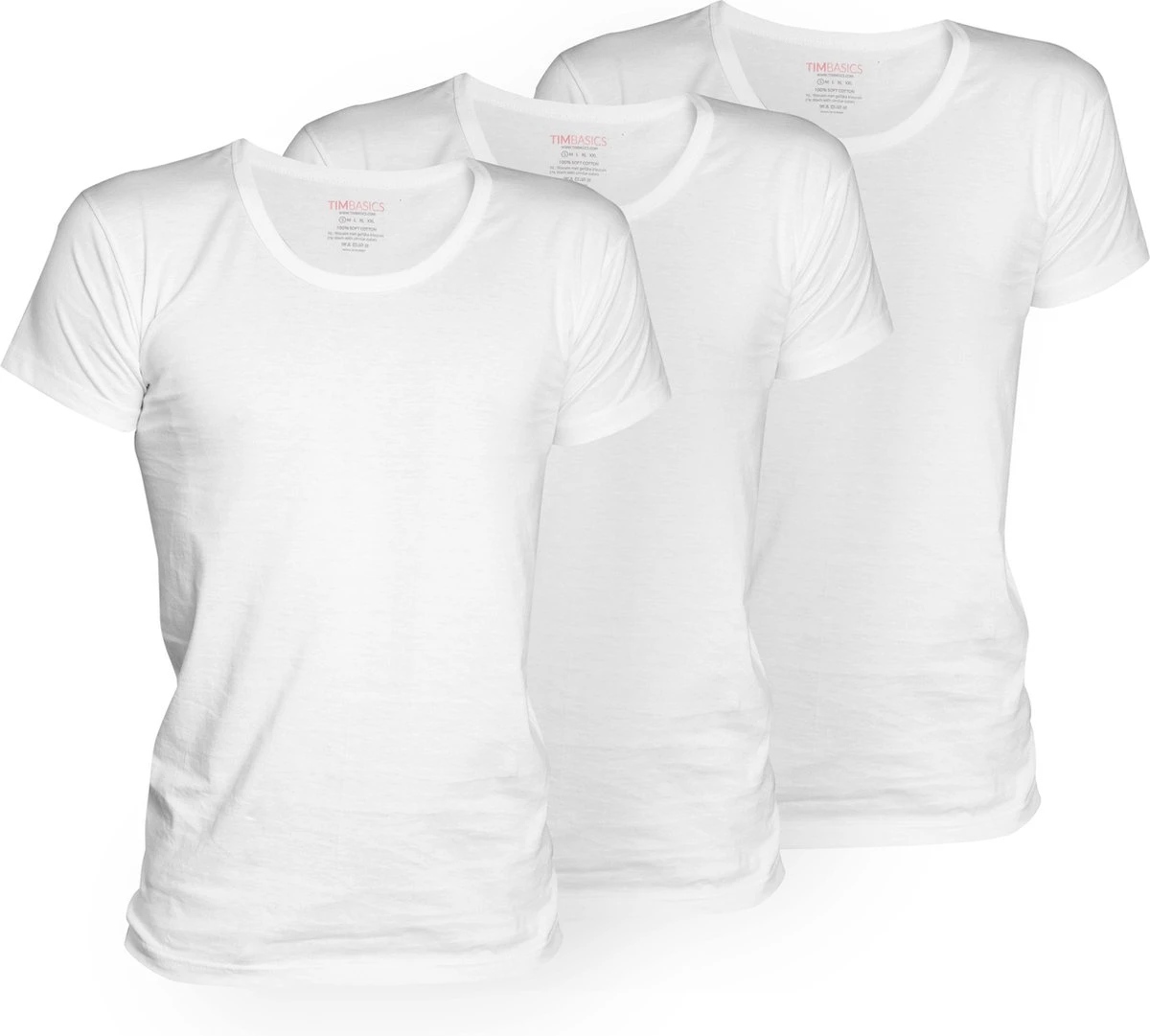 TimBasics – 100% Katoen – Ronde Hals – Heren Ondershirt – 3-Pack – Wit – L